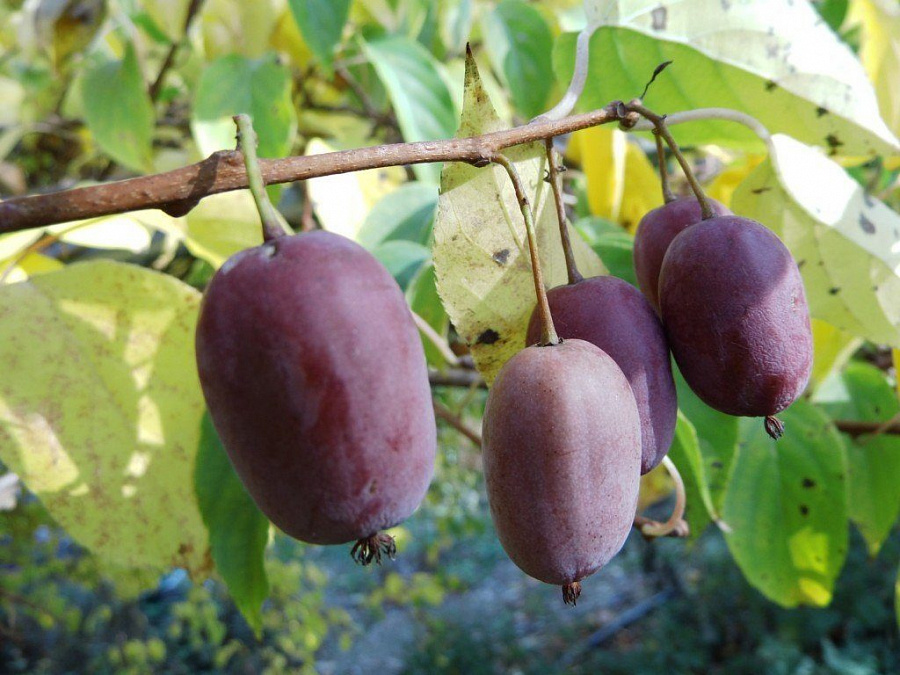 Актинидия "Сиреневый туман" (женская) – это сорт, выведенный в Москве в 1999 году в Институте садоводства и питомниководства под руководством В. В. Кичины. Этот крупноплодный и бесшипный сорт отличается мощными побегами и здоровым внешним видом. Ягоды крупные, весом от 4 до 10 граммов, имеют коническую форму и ярко-красный блестящий окрас. Мелкие костянки плотно сцеплены между собой, что делает ягоды плотными и транспортабельными. Вкус сладкий с легким малиновым ароматом, сочной тающей мякотью и небольшим количеством мелких семян. Ягоды подходят как для свежего потребления, так и для всех видов домашней переработки. Урожайность высокая – до 4-5 кг с куста.