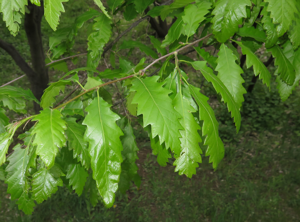 Молодые побеги имеют сероватое опушение с легким желтоватым оттенком, а однолетние ветви становятся голыми. Почки у дуба заостренные и яйцевидные, с буроватыми, слегка опушенными чешуйками. Они окружены линейными прилистниками, которые также густо опушены и достигают длины до 1,6 см.