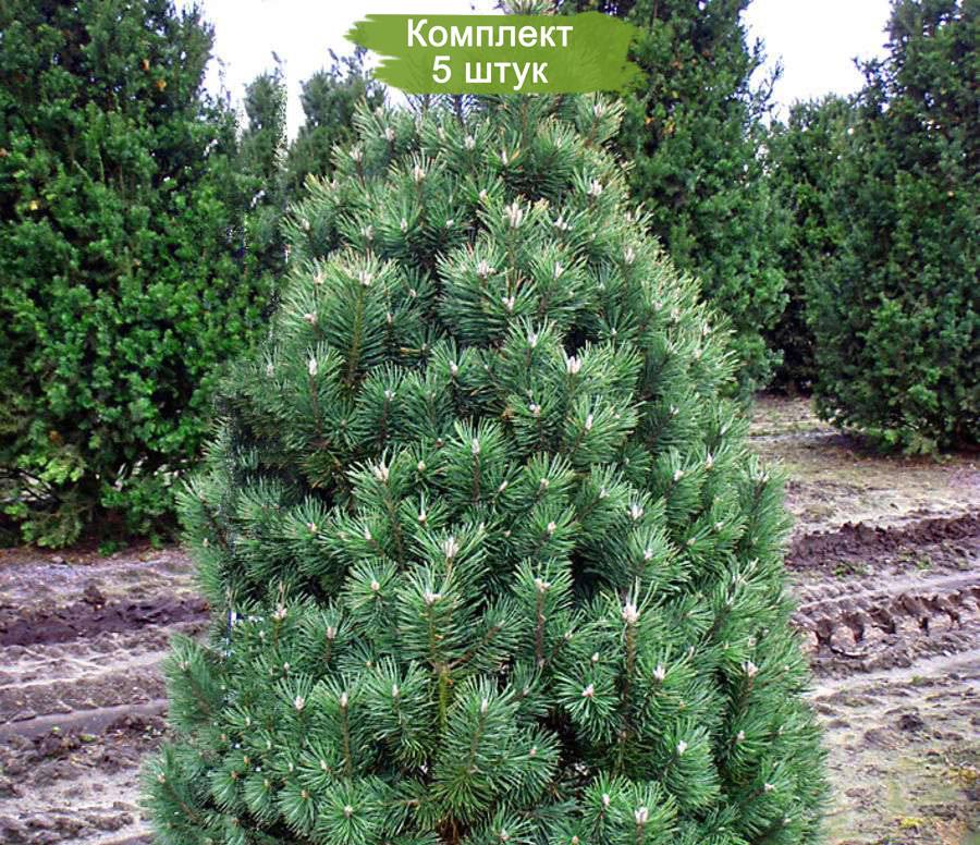 Саженцы горной сосны размером от 150 см в количестве 5 штук предлагаются по привлекательной цене - платите за четыре, получаете пять! Горная сосна пользуется большой популярностью среди садоводов и ландшафтных архитекторов благодаря своим компактным размерам и способности украшать любые цветниковые композиции. Это растение сохраняет свою зеленую окраску круглый год и радует приятным ароматом.