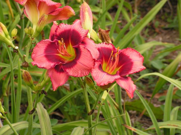 - Лилейник Dan Mahony очень хорошо отзывается на полив. Для формирования качественных цветков необходим обильный полив под корень. Мульчирование поможет поддерживать нужный водный режим, но избегайте использования свежих опилок.