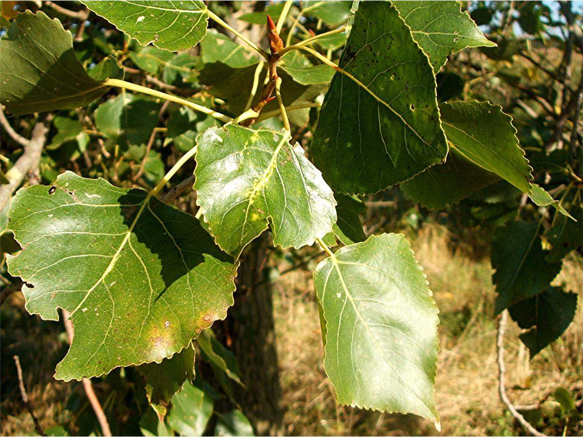 В природе черный тополь может расти как одиночно, так и в смешанных лесах вместе с березами, ивами и другими видами тополей. Он хорошо адаптируется к различным климатическим условиям и устойчив к негативным воздействиям окружающей среды. Высота черного тополя может превышать 30 метров, а диаметр ствола достигает полутора метров. Ветвление у этого дерева происходит редко. С возрастом кора дерева меняет цвет с серого на черный, становясь более гладкой и светлой на больших высотах. Корневая система черного тополя мощная и якорного типа, с хорошо развитой сетью корней, которые могут пролегать как у поверхности земли, так и на значительной глубине. При подтапливании возможно образование придаточных корней, что способствует быстрому росту и устойчивости дерева.