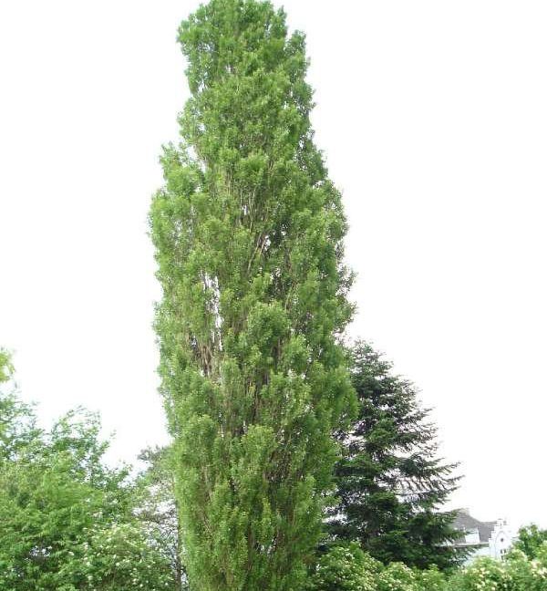 Серебристый пирамидальный тополь — это идеальный выбор для тех, кто страдает от аллергии, так как в культуре представлены только мужские экземпляры, не производящие пуха. Это растение достигает высоты до 40 метров и имеет узкую колонновидную форму, напоминающую кипарис. Его пирамидальная крона и стройный ствол станут украшением любой аллеи или парка, а также не займут много места на вашем участке, при этом создавая эффектный визуальный акцент.